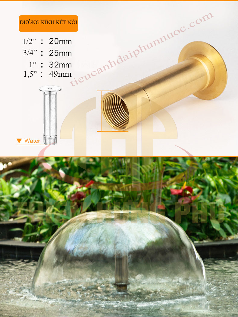 - Đầu phun tạo hình chùm pháo hoa được lắp đặt trang trí cho các hệ thống như; Đài phun nước mini, tiểu cảnh, khuôn viên, sân vườn, hồ nước biệt thự, hòn non bộ, thác nước, hồ cá