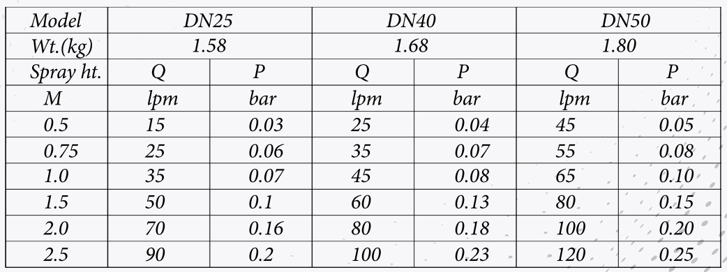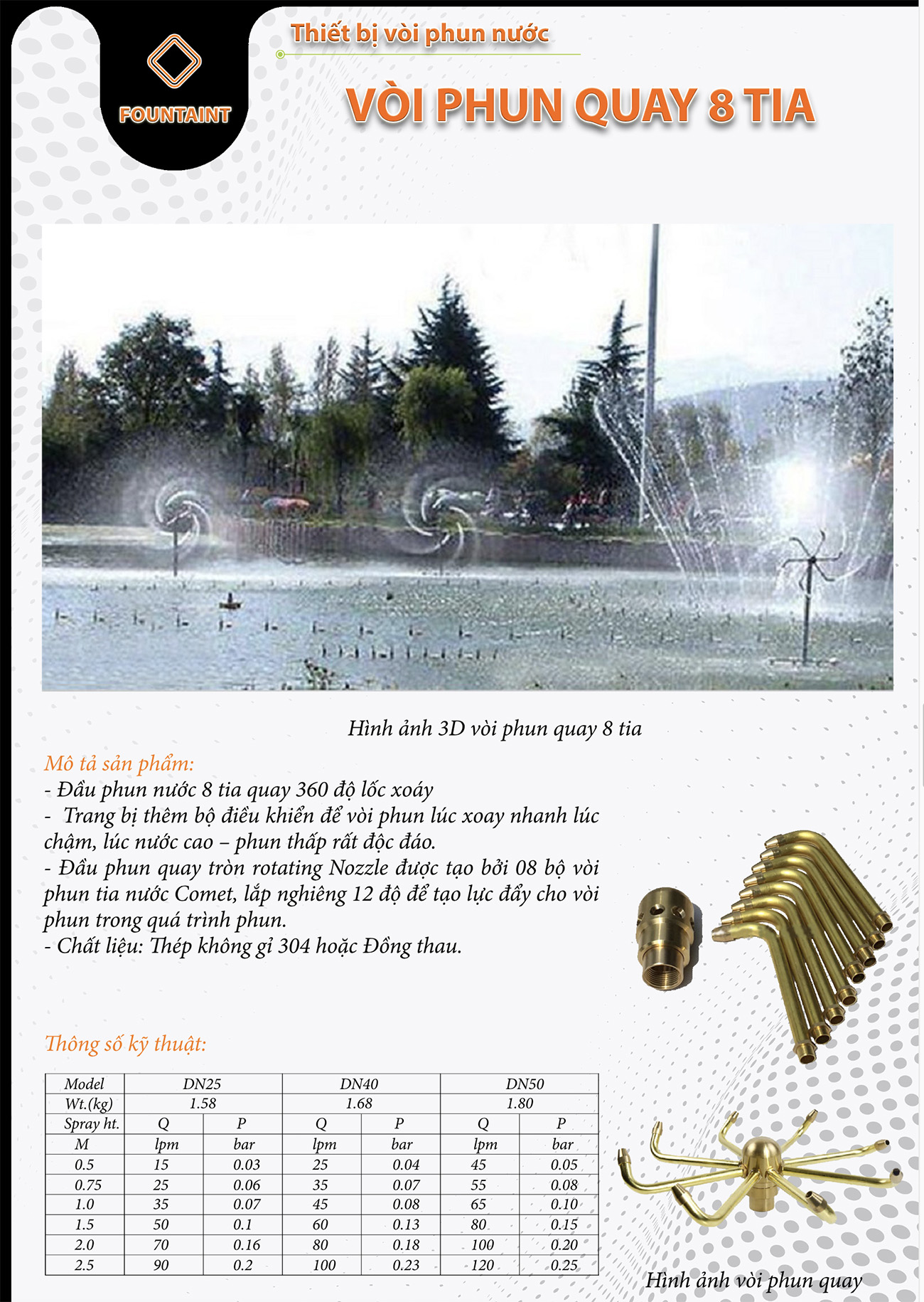 Thông số kỹ thuật Vòi phun quay 8 tia
